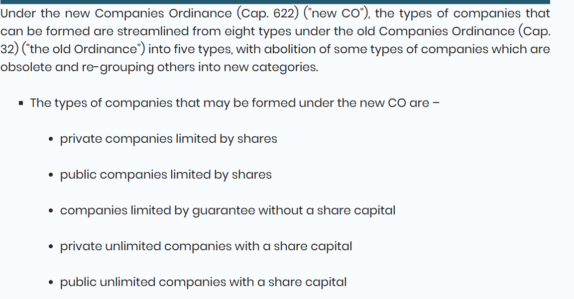 According to the Types of companies under the new Companies Ordinance (CO), Hong Kong Companies Registry, there are 5 types of companies that can be formed under the new CO. A private limited company is one of them.